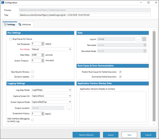 - If this is your first time executing your process, you should run it without intervention. This method lets you see if your process steps are correctly defined and in the correct order for your application.